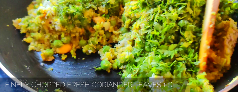 In a pan add 1 teaspoon of oil. Add 1 teaspoon of cumin seeds Add the onion and sort it is soft and 1 tablespoon of water to this onions so that they remain soft and juicy Now add the green peas And smashed green peas Mixture from the mixer jar. Now add 1 cup freshly grated coconut, Some cashew pieces, Green coriander.