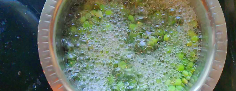 Start by boiling 3 cups of water When the water starts boiling vigorously Add 2C of green peas to the water Allow to boil for 2 minutes Then drain them and put them in an ice bath. That is immersed in ice-cold water This will stop the cooking process We will get parboil peas which are cooked but still firm.