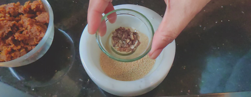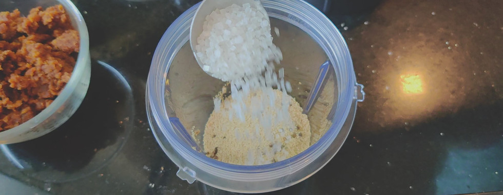 The sugar is added to ease the process of grinding Grind into a fine powder Add this mixture to the Rawa Mawa mix Add 1 tsp of Nutmeg.